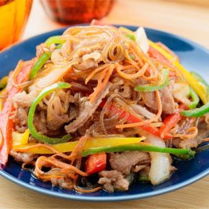 国産牛肩ロースと赤パプリカの黒胡椒炒め
