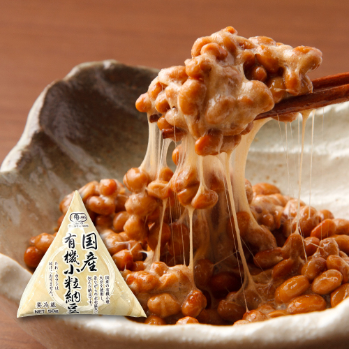 国産の有機大豆を使用し、昔ながらの赤松経木に包んだ風味豊かな納豆です。粒が柔らかくふっくらし、大豆の味わいが楽しめます。※たれとからしはついておりません。