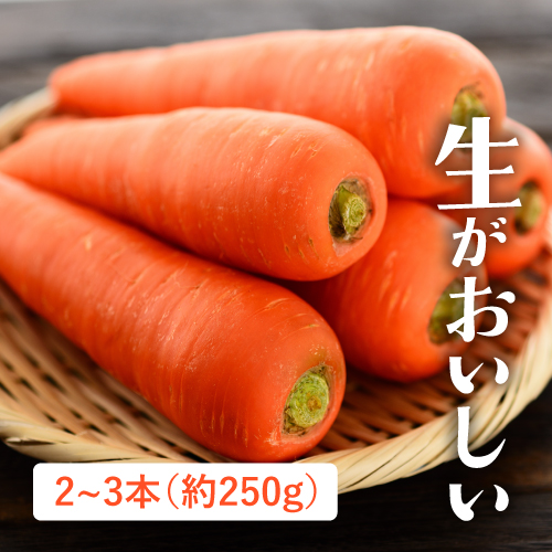 表皮から芯まで鮮やかな濃オレンジ色が特徴の冬どり五寸にんじんです。甘みが強く、にんじん特有の臭みが少ないため、生食でも食べやすく、デザートやジュースにも最適です。