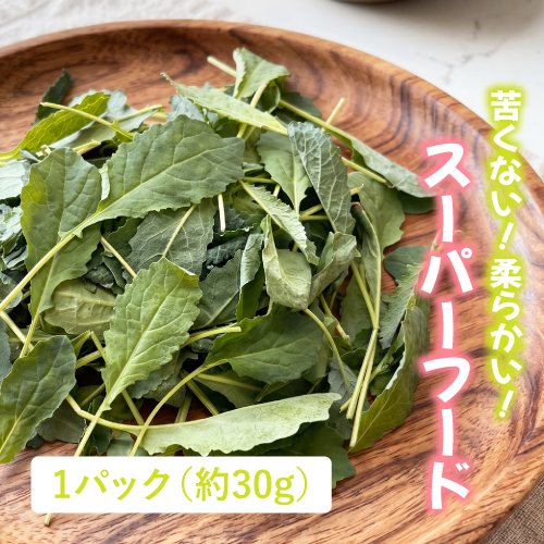 ケールの若葉で、苦みが少なく柔らかいため、生のサラダやスムージーで手軽に食べられるスーパーフードです。ビタミンA、C、カルシウムが豊富で、葉が小さく青臭さが少ないのが特徴。サラダ、炒め物、おひたしなど幅広く活用できます。