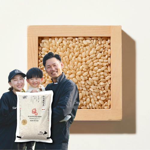 北海道美唄市の岸本さんが作るゆめぴりかの玄米です。豪雪地帯でもある地域の特性を生かした、ミネラル豊富な山の雪解け水を贅沢に使用し、岸本さんが1年間手塩にかけて大切に栽培されました。玄米には白米に比べて食物繊維やビタミンB1などの栄養が豊富に含まれています。