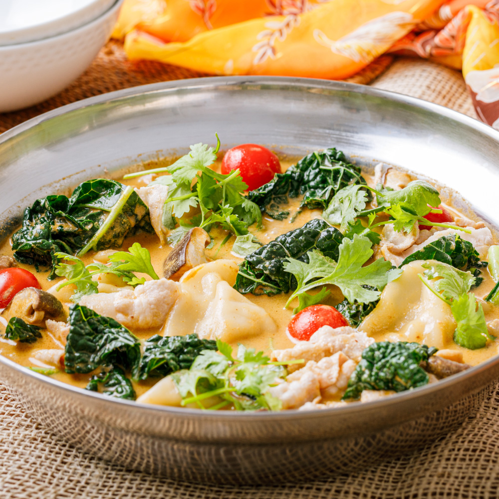 野菜と水餃子の旨みが溶け出した、最後の一滴までおいしいアジアン鍋を存分にお楽しみください。