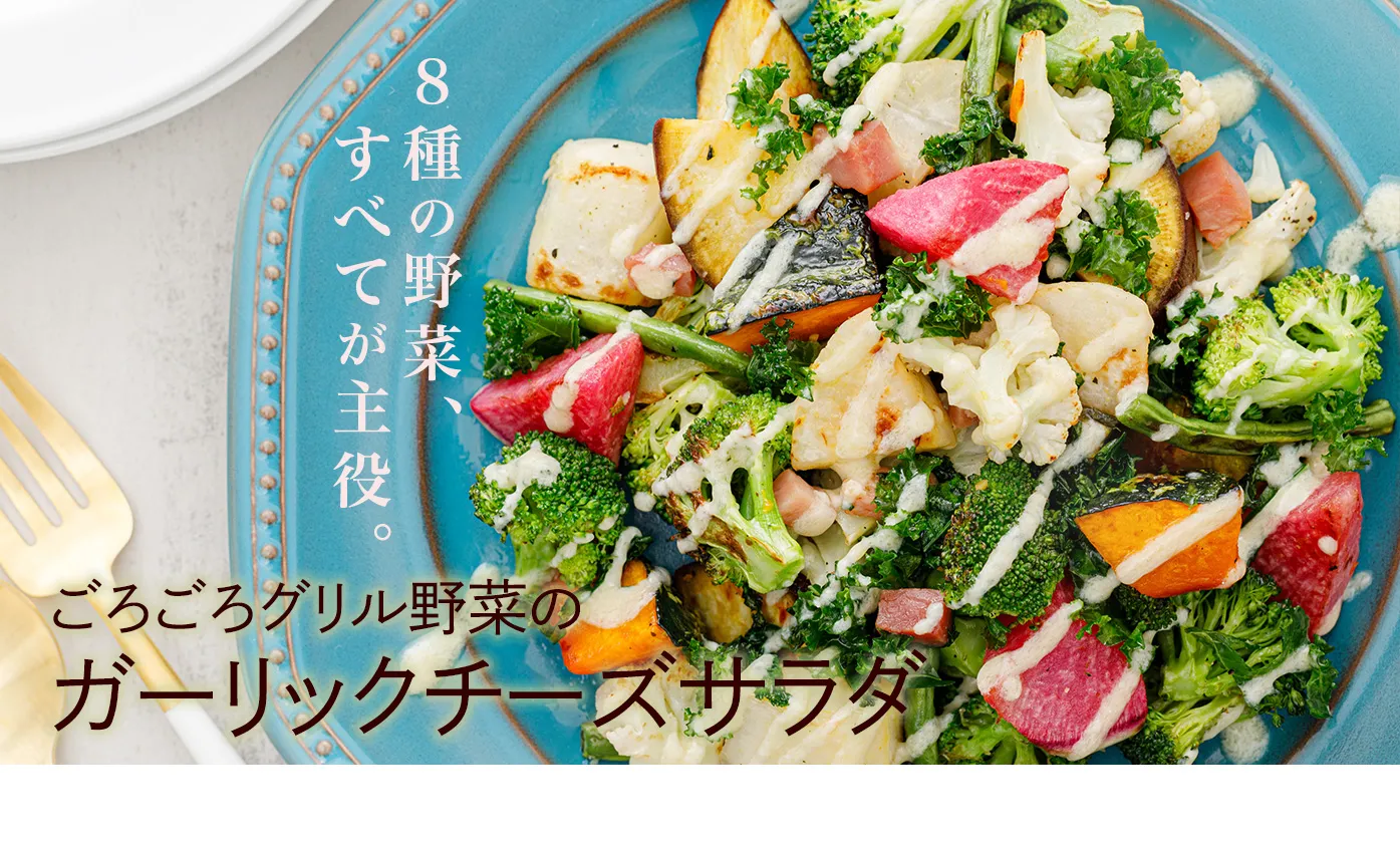ごろごろグリル野菜のガーリックチーズサラダ(2人前)1,280円(税込)